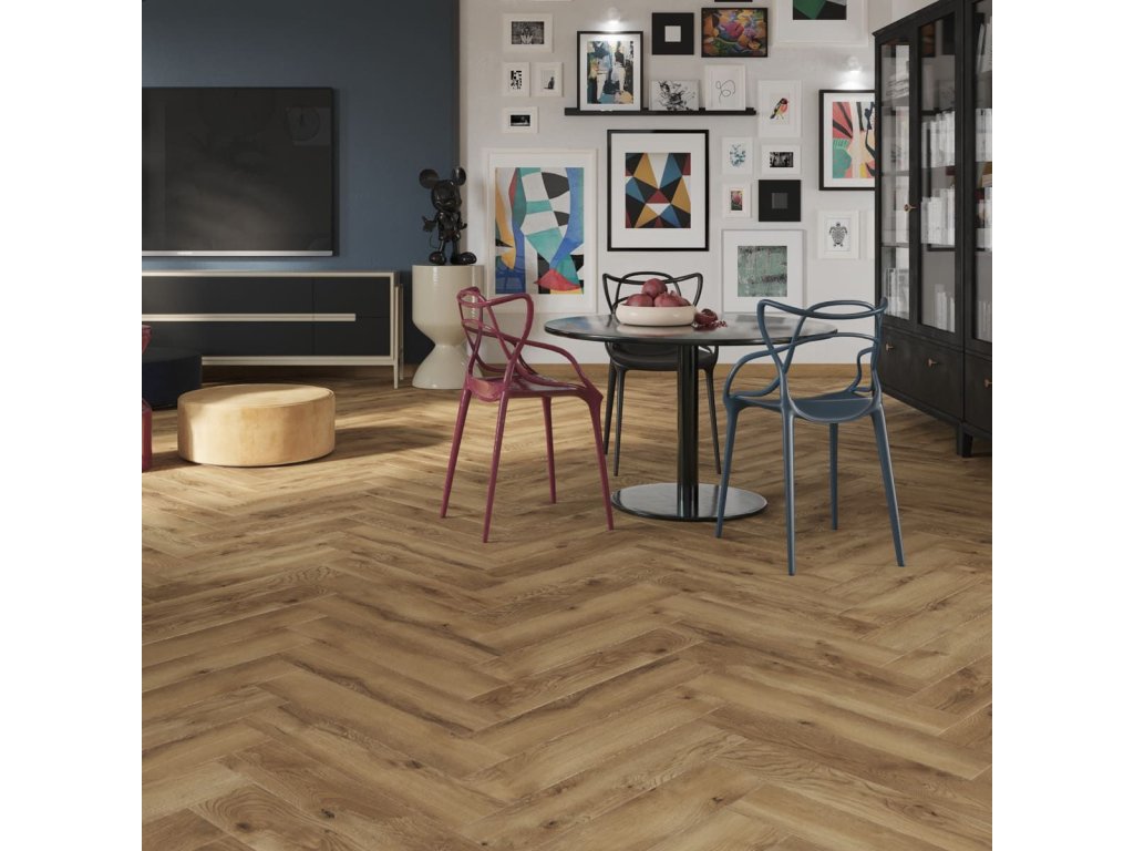 Classen Herringbone 8 mm 67702 Adora Oak – Laminátová podlaha v klasickém vzoru rybí kosti
